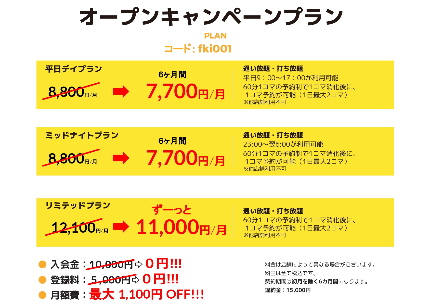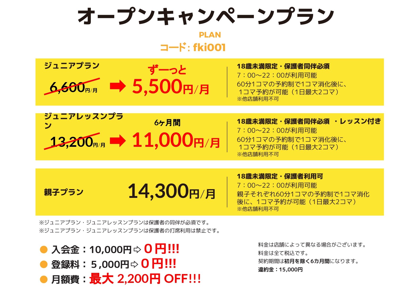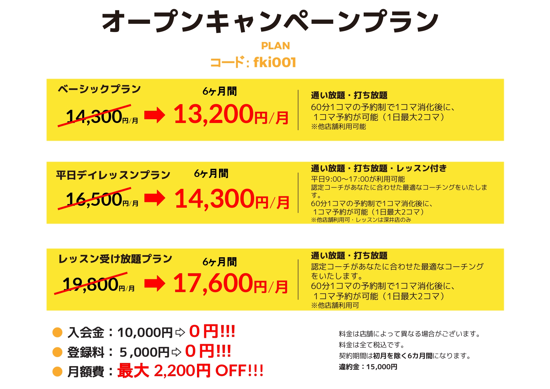 ※こちらはマイゴル深井店の金額です。店舗によって月額は変わります。