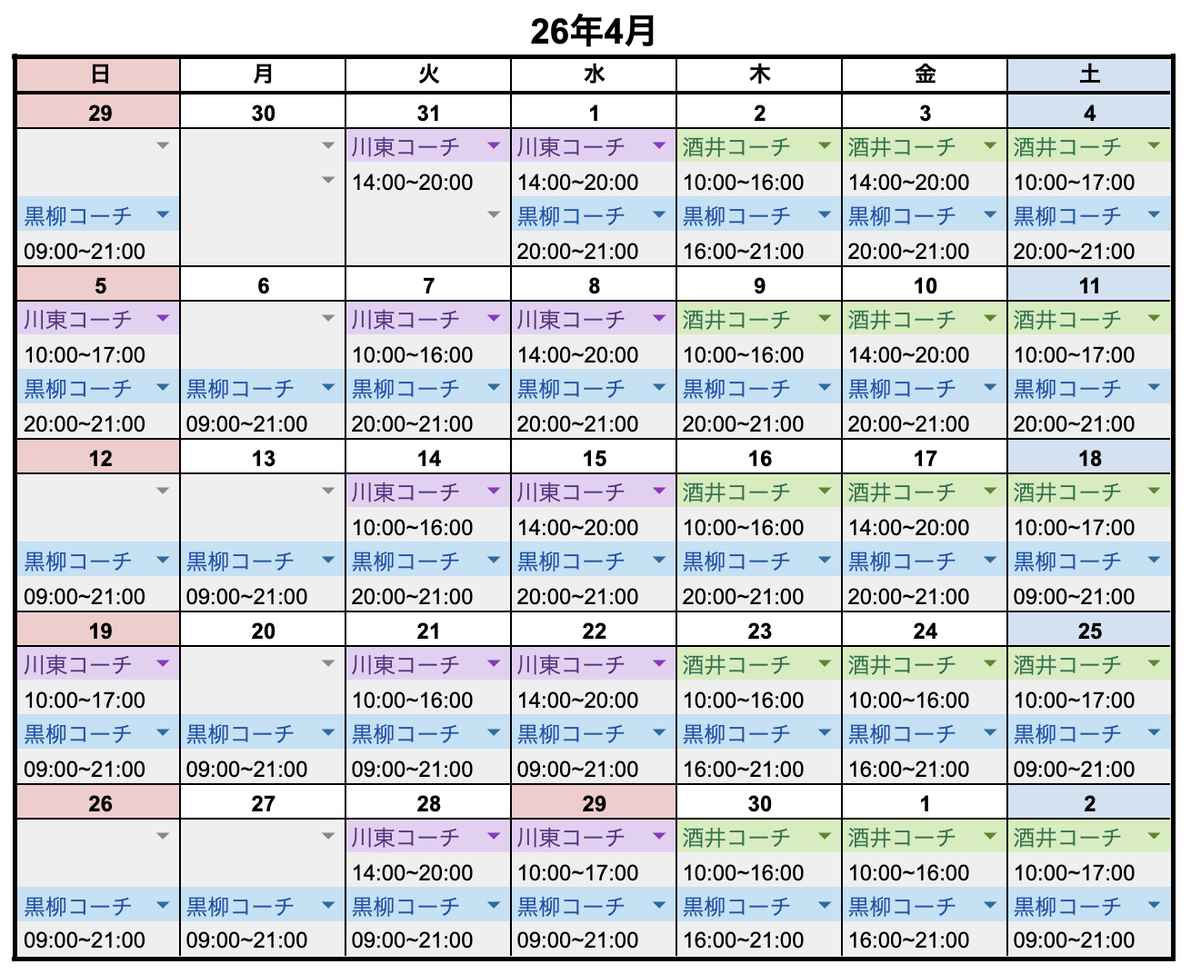 - ・「自主練・レッスン受け放題」認定コーチがあなたに合わせた最適なコーチングをいたします。