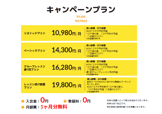 ※こちらはマイゴルフレーン小手指店の金額です。店舗によって月額は変わります。