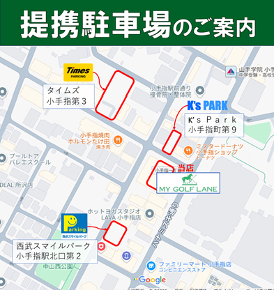 小手指店会員様、無料体験申し込みの方向けに、3ヶ所のコインパーキングと提携!
