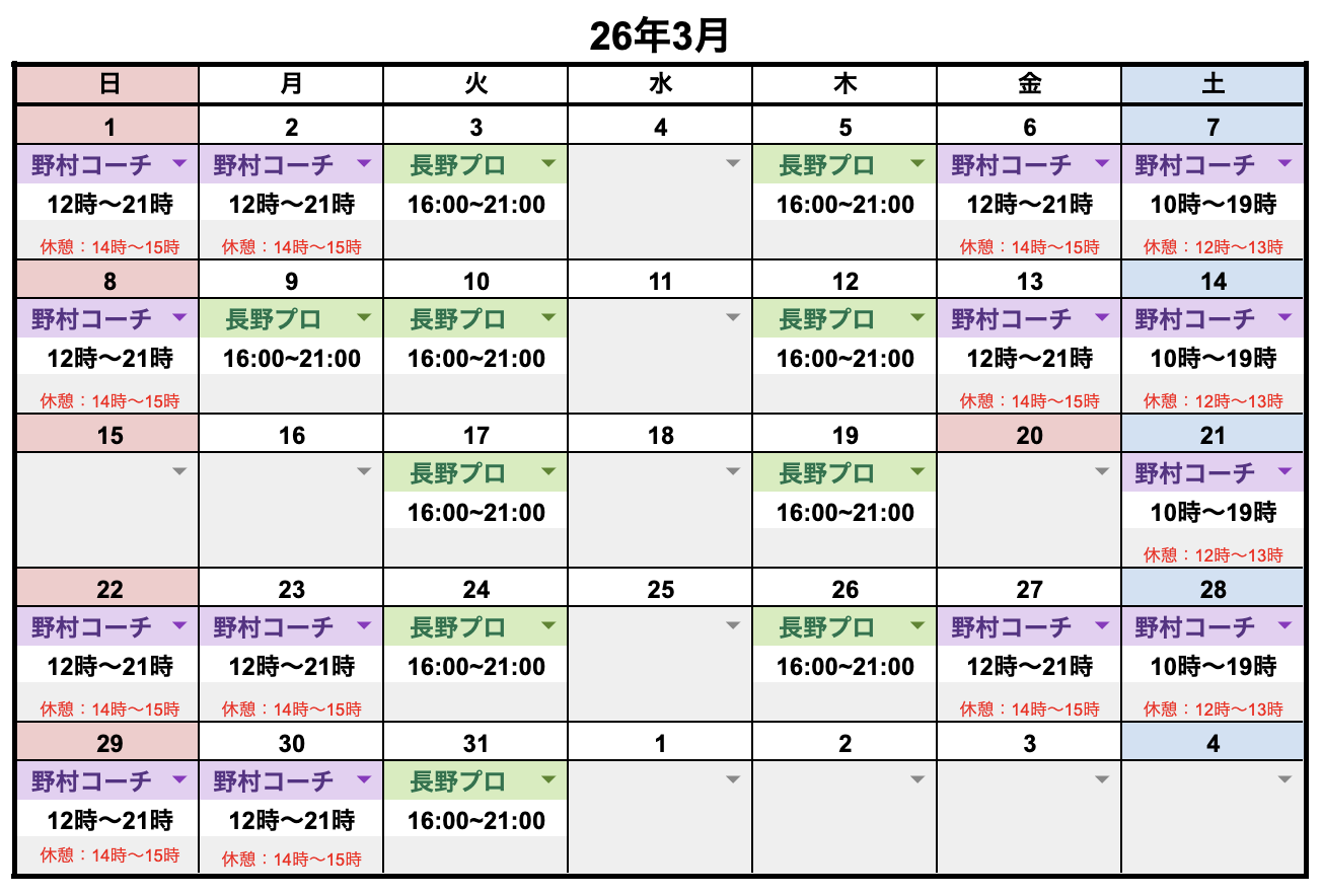 - 1コマ60分の予約制で1日1コマ利用後、同日何度でも予約可能
